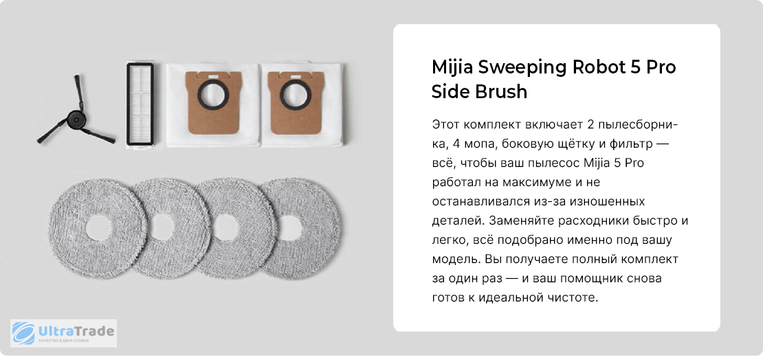 Набор аксессуаров для пылесоса Xiaomi Mijia Sweeping Robot 5 Pro Side Brush (2 пылесборника, 4 мопа, боковая щетка, фильтр) (OV21CN-AP)