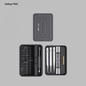 FM2 — Комплект для точной работы с мелкими деталями Это универсальное решение для ремонта электроники, смартфонов и других устройств с мелкими компонентами. В комплект входит магнитная доска, которая надежно удерживает металлические детали, предотвращая их потерю во время работы. Комплект также включает лоток-органайзер с пинцетами: изогнутым, прямым, остроконечным и двумя металлическими толкателями. Эти инструменты позволяют точно манипулировать мелкими деталями, обеспечивая высокую точность при сборке или разборке. Центральным элементом является набор бит из легированной стали S2, который включает 40 штук различных типов: от крестовых (PH) до специализированных (Torx Security, Tri-Wing). Все биты имеют размер 4 × 45 мм и изготовлены из прочного материала, что гарантирует долговечность и надежность. *Подробнее о составе набора можно узнать в закладке "Габариты". |