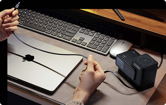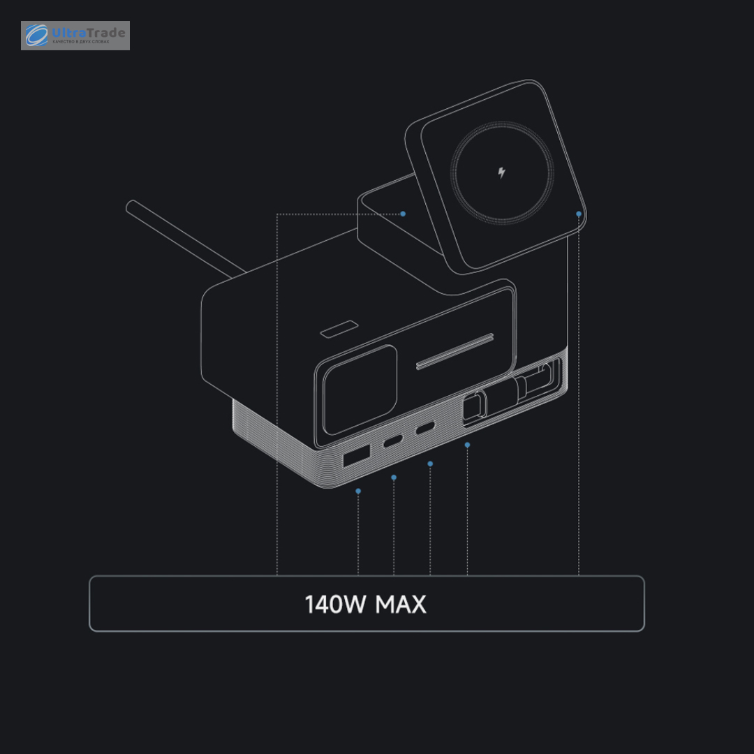 140W MAX Модель поддерживает быструю зарядку ноутбуков мощностью до 140 Вт. Вы можете заряжать два ноутбука одновременно до 65 Вт каждый, используя встроенный кабель Type-C1 и порт Type-C2. Например, MacBook Pro 16 (M3 Max) заряжается до 58% за 30 минут через порт Type-C2. ![]() |