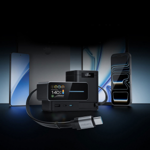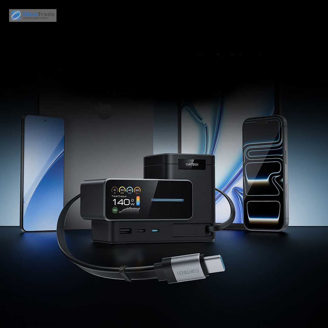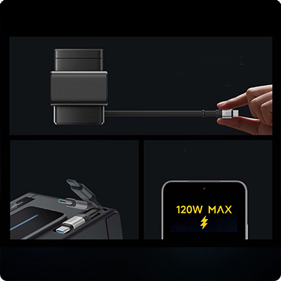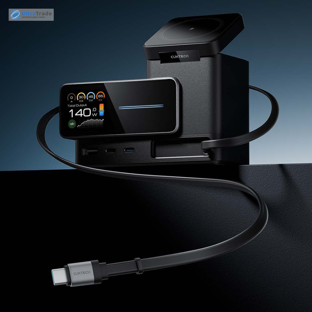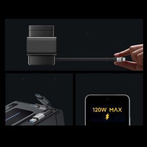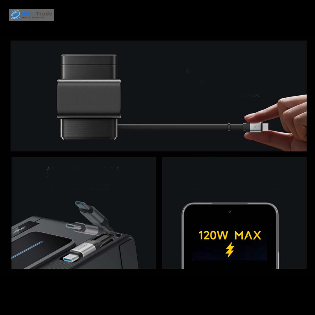 Кабель Встроенный гибкий кабель длиной около 0,7 метра обеспечивает удобство использования. Ступенчатая система фиксации позволяет регулировать длину, а магнитный разъём помогает аккуратно закрепить кабель на корпусе. Кабель поддерживает ток до 6 А и быструю зарядку HyperCharge мощностью до 120 Вт. ![]() |