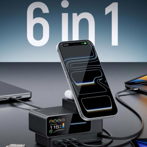 ![]() 6 в 1 В устройстве предусмотрены все популярные виды подключений: удобный встроенный кабель Type-C, два дополнительных порта Type-C, классический USB-A и две универсальные беспроводные площадки. Фактически, вы получаете 4 проводных зарядных устройства, 2 беспроводные зарядки и готовый кабель в одном приборе. |
