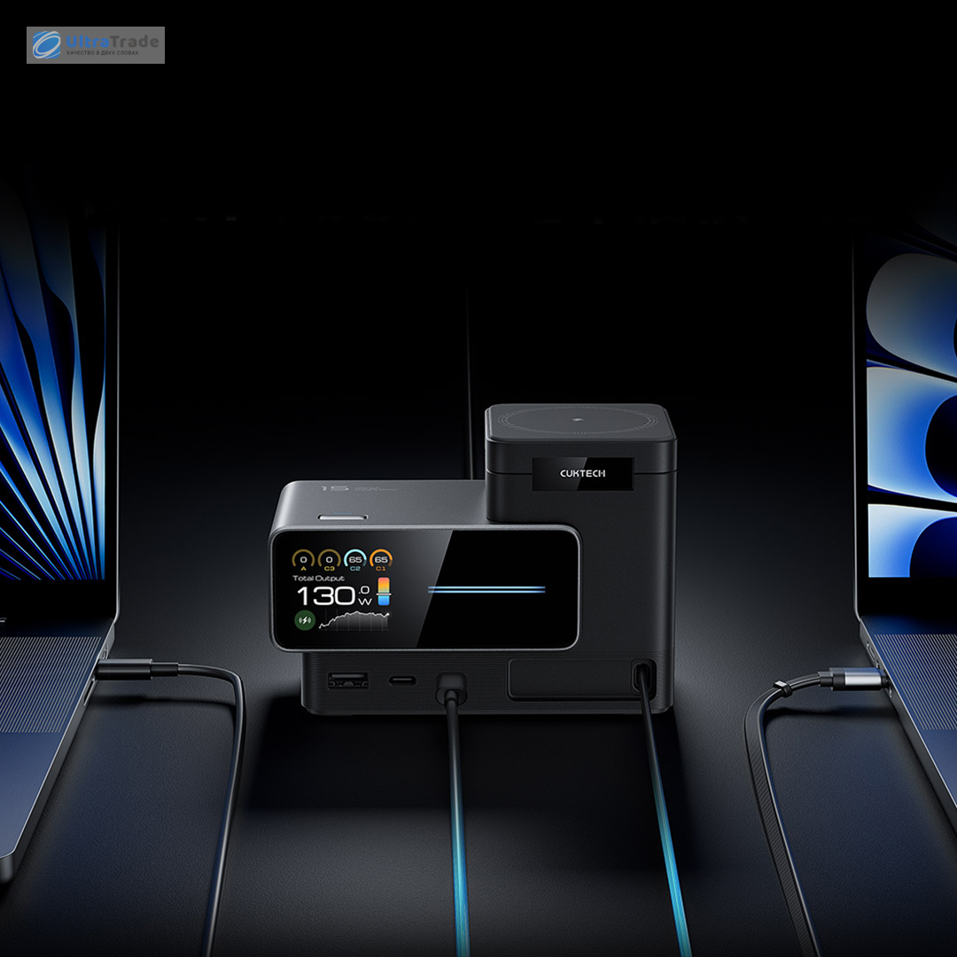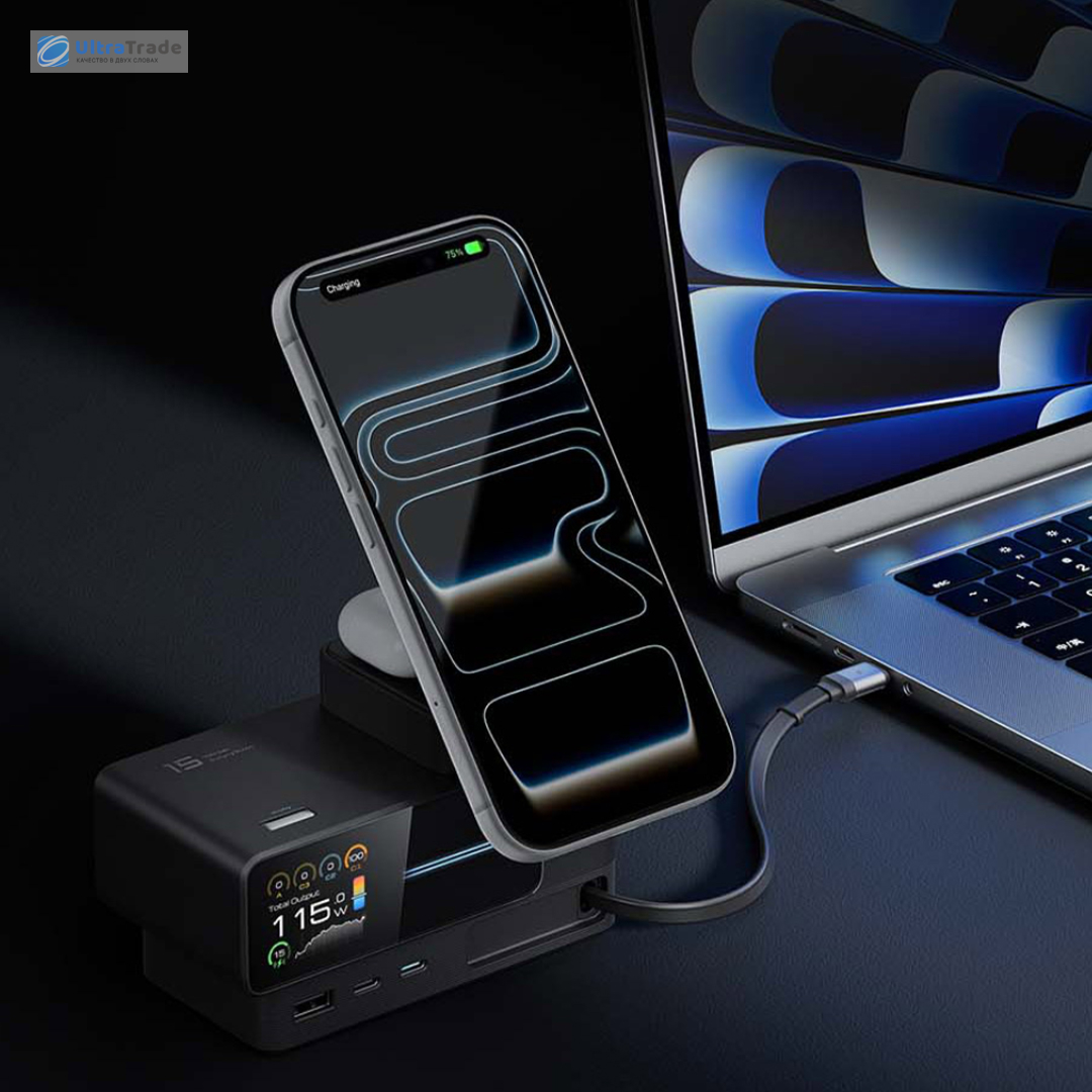 ![]() Дизайн Это зарядное устройство сочетает высокую производительность с современным дизайном, который украсит ваш стол. Классический чёрный корпус и световая полоса-орбита создают технологичный вид. |