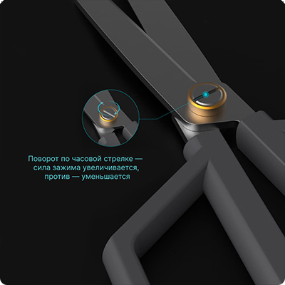 ![]() Регулируемый шарнир Ножницы оснащены регулируемым петлевым шарниром, позволяющим настраивать усилие при открытии и закрытии лезвий. Поворот вправо увеличивает силу, а влево — уменьшает, обеспечивая комфорт при работе с разными материалами. |