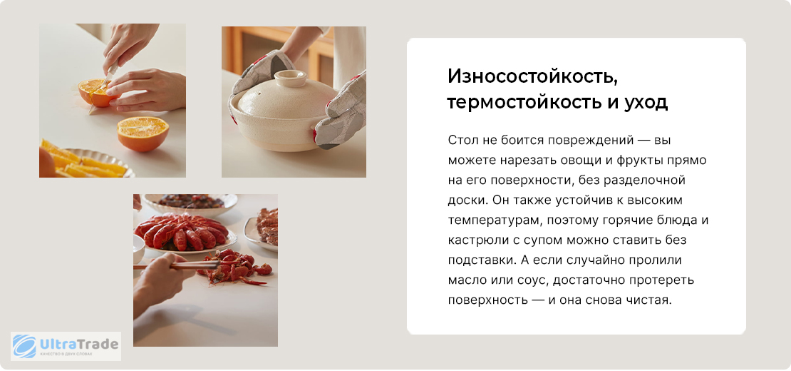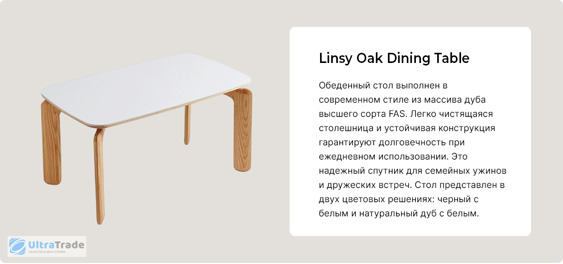 Стол для каждого момента жизни За этим столом уютно встречать гостей и работать за ноутбуком — просторная столешница вмещает всё необходимое. Утро начинается с неспешного завтрака и ароматного кофе, а днём стол легко превращается в пространство для творчества и работы. |