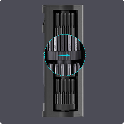 ![]() Вращающаяся система Вращающаяся система хранения обеспечивает невероятное удобство доступа ко всем насадкам. Механизм плавно поворачивается на 360 градусов, позволяя мгновенно найти нужную биту без лишних движений. |