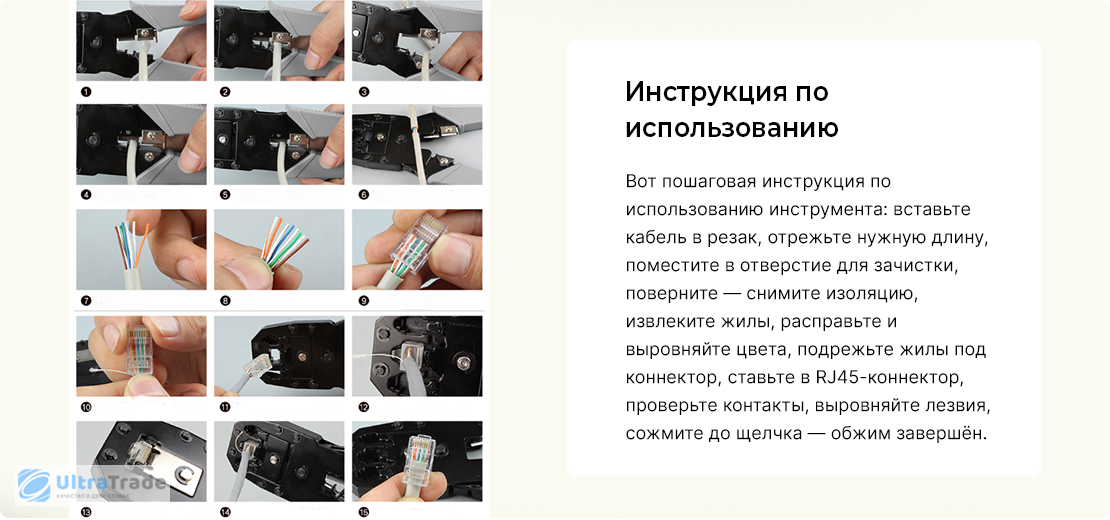 Универсальный инструмент Обжимные клещи кримпер объединяют в себе три ключевые функции: надёжное обжимание разъёмов 4P/6P/8P, быстрое отрезание кабеля и аккуратную зачистку как круглых, так и плоских проводов — идеально подходят для UTP/STP-кабелей. ![]() |