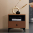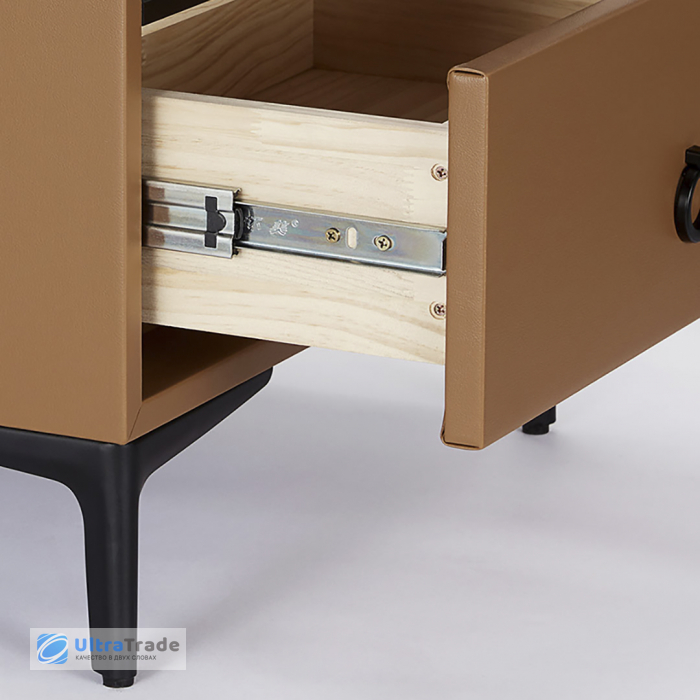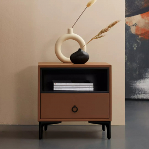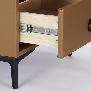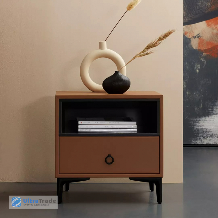 Внимание к каждой детали Для открытия выдвижного ящика установлена элегантная выдвижная ручка, представленная в виде кольца. Она изготовлена из прочного металла, окрашенного в матовый черный цвет. Новая прикроватная тумбочка от 8H позволит сделать вашу спальную комнату более уютной и стильной. Благодаря мягкой кожаной обивке, эта тумбочка будет интересно выглядеть в любом интерьере. |