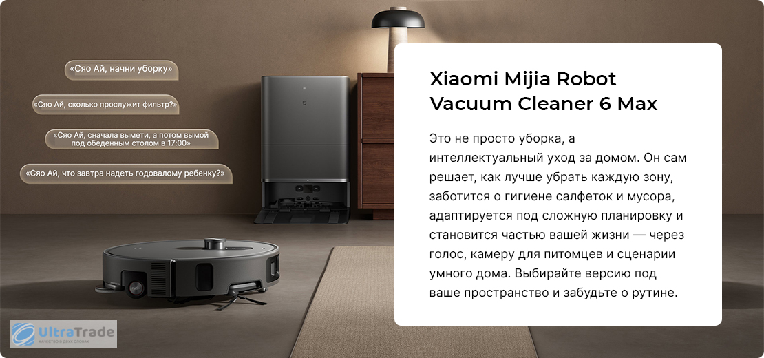Робот-пылесос с базой для самоочистки Xiaomi Mijia Robot Vacuum Cleaner 6 Max Auto Water Supply and Drainage Version (PV11CN+PV11CN-RD)