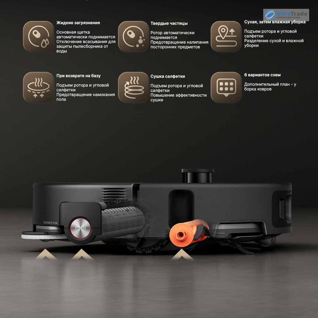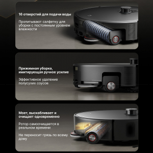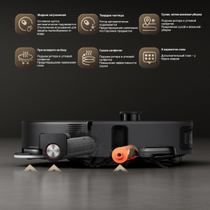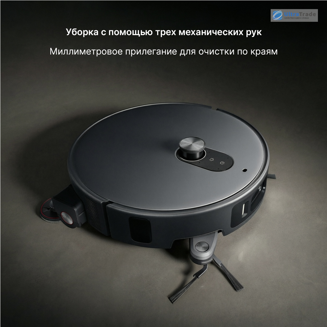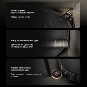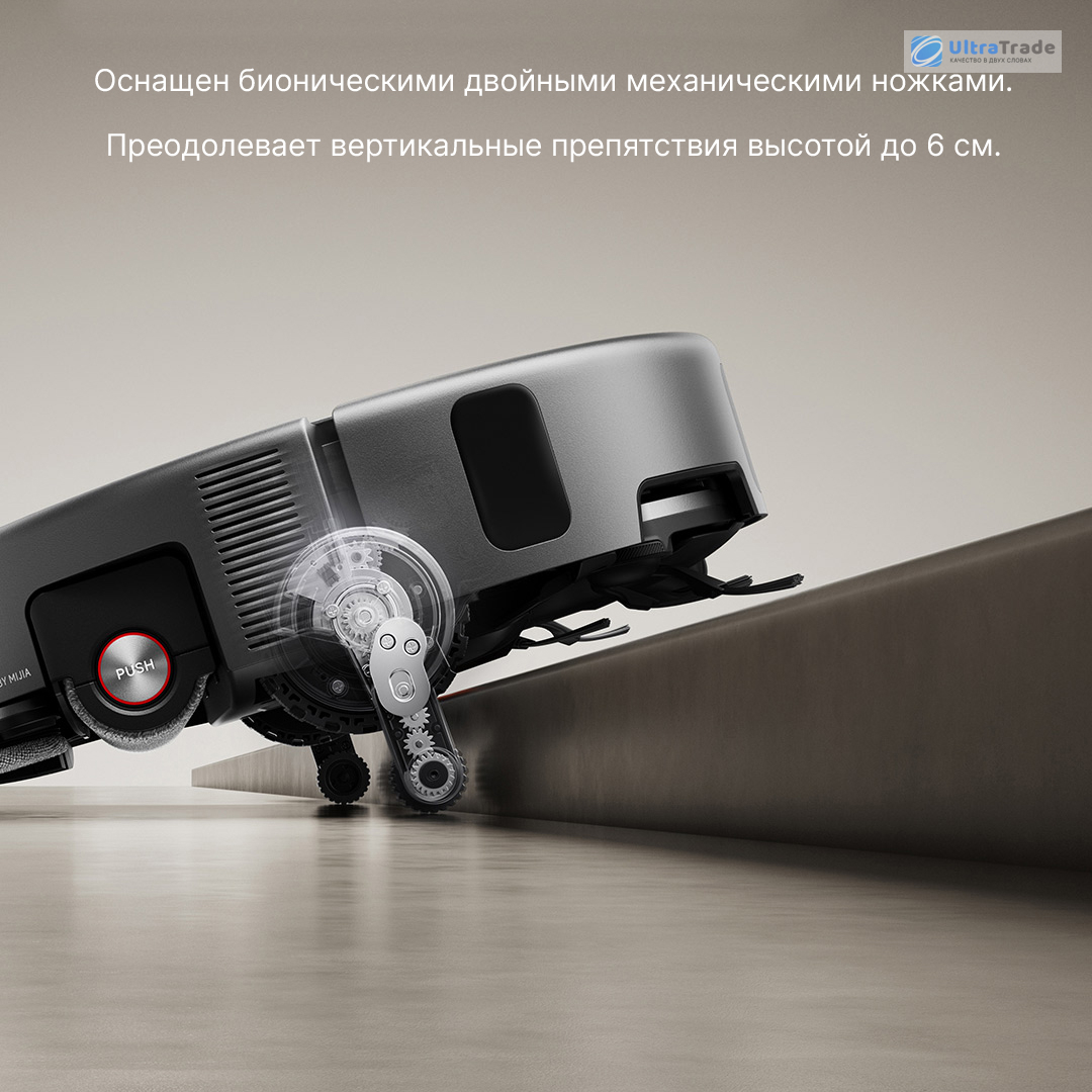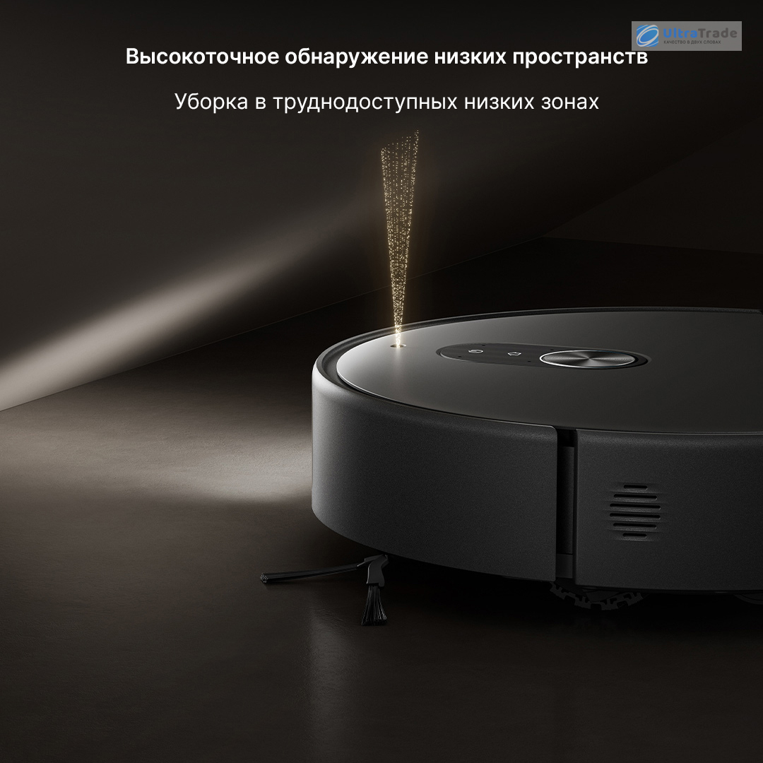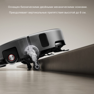 Уборка вдоль стен, углов и ножек мебели Гибкие выдвижные элементы с салфетками плотно прилегают к стенам, углам и ножкам мебели, убирая пыль в зонах, куда не достают обычные роботы. Ротор на механической руке и угловая салфетка работают синхронно с боковыми щётками, обеспечивая миллиметровую точность уборки вдоль всех поверхностей — никаких «серых зон» вдоль плинтусов. Бионические двойные «ножки» позволяют преодолевать вертикальные препятствия высотой до 6 см — пороги между комнатами больше не граница. При уборке низких зон (под диванами, кроватями) лидар автоматически опускается, и робот заезжает в пространства высотой от 9,3 см. Даже на наклонных поверхностях он не застревает благодаря точному лазерному сканированию пространства впереди. |