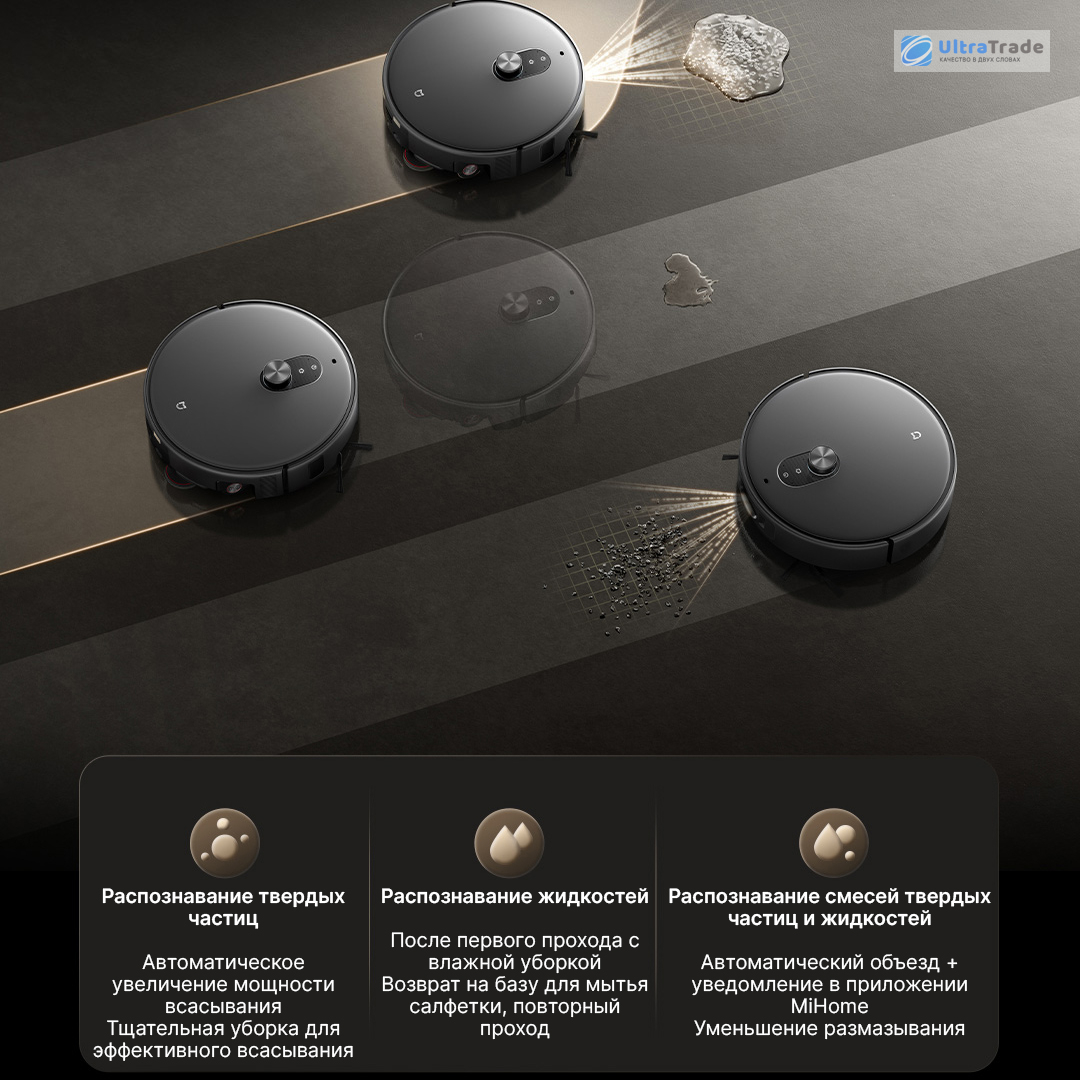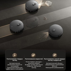 Интеллектуальное распознавание и адаптивная стратегия уборки Робот оснащён тремя камерами, которые в реальном времени анализируют пространство и распознают 280 типов предметов — от проводов толщиной 3 мм до тапочек, игрушек и мебели. Отдельный алгоритм ИИ выявляет 47 видов загрязнений: жидкие пятна, сухие крошки или смеси (например, пролитое молоко с хлебными крошками). Сертификат международной лаборатории TÜV Rheinland подтверждает точность распознавания. На основе анализа робот сам выбирает оптимальную стратегию: при обнаружении ковра ротор и угловые салфетки поднимаются, сохраняя покрытие сухим; при жидких загрязнениях основная щётка отключается и поднимается, чтобы пылесборник не намок; на сухих крошках автоматически увеличивается мощность всасывания. Такая система предотвращает размазывание грязи, защищает технику и обеспечивает правильную уборку каждой зоны без участия пользователя. |