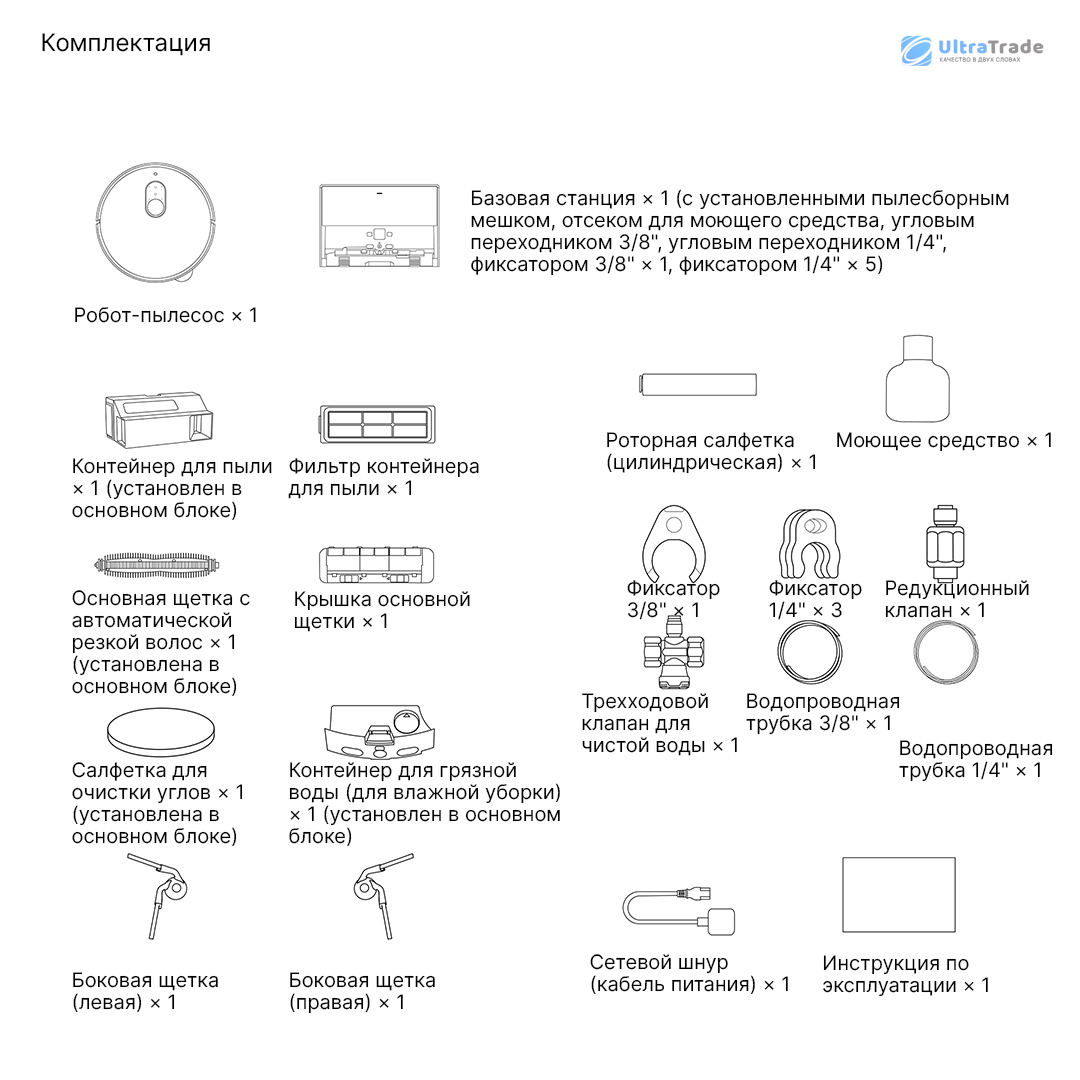 | Функции базы: | автоматическая подача чистой воды, слив грязной, добавление моющего средства |