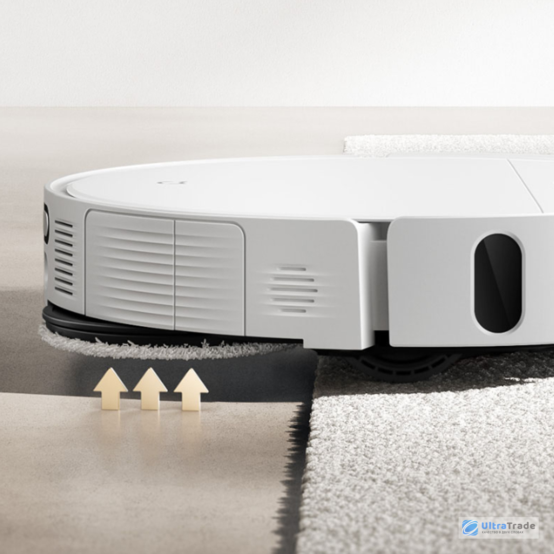 Распознавания ковровых покрытий Робот-пылесос оснащён AI системой распознавания ковровых покрытий с помощью ультразвуковых датчиков. Устройство автоматически поднимает тряпки на 10 мм и увеличивает мощность всасывания, обеспечивая сухую уборку без риска намокания ворса. ![]()  |
