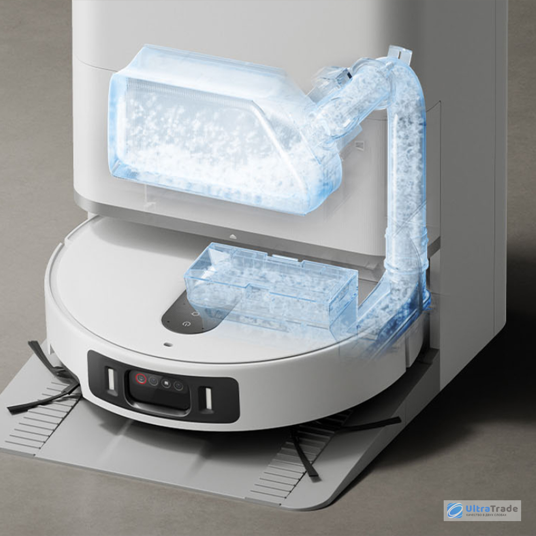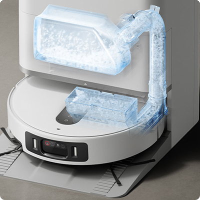 Эта версия базы идеально подходит для домов без возможности подключения к водопроводу. После завершения уборки робот-пылесос автоматически запускает цикл ухода за тряпкой: промывку при температуре до 85 °C и тепловую сушку при 50 °C. Всего доступно 4 уровня регулировки температуры воды и 3 режима длительности сушки.