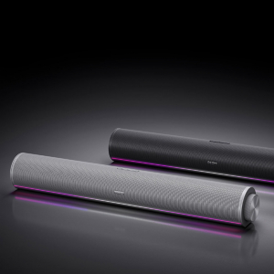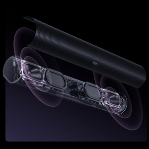 Дизайн и управление Металлическая решётка придаёт саундбару стильный, прочный вид и защищает динамики, идеально вписываясь в любой интерьер. Громкость, звуковые режимы и подсветку легко регулировать одной рукой — благодаря поворотному колесу и кнопкам всё управление остаётся простым и быстрым. ![]() |