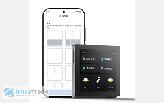 Интерфейс под ваши задачи Панель предлагает невероятную свободу настройки экрана под ваш образ жизни. Из девяти вариантов макетов вы можете создать уникальное пространство, разместив до 72 различных сценариев, таких как «Возвращение домой» или «Ночной режим». На одном устройстве доступно до 12 экранов, что позволяет быстро добавлять гаджеты и сценарии, а часто используемые действия всегда будут под рукой на главном экране. При этом данная панель не только функциональна, но и стильно впишется в любой интерьер. С 45 вариантами оформления экрана она превращается в элемент декора, который дополнит ваше пространство и подчеркнет индивидуальность. |