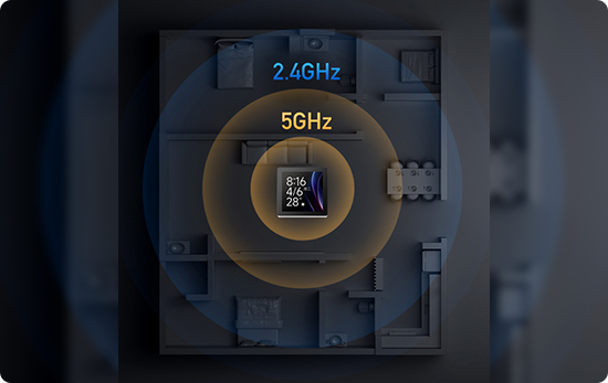 Надёжное и гибкое сетевое подключение В панель встроен шлюз Xiaomi Mesh 2.0 — центральный узел для всех ваших устройств. Он обеспечивает быстрое, мощное и стабильное соединение, позволяя устройствам с Bluetooth подключаться почти мгновенно. Сеть поддерживает множество гаджетов одновременно, гарантируя быстрый отклик и автоматическое удалённое обновление (OTA), даже когда вас нет дома. Устройство поддерживает двухдиапазонный Wi-Fi (2.4 ГГц и 5 ГГц), что делает подключение максимально гибким. Диапазон 2.4 ГГц отлично справляется с прохождением сигнала через стены, а 5 ГГц обеспечивает высокую скорость и минимальные помехи. |