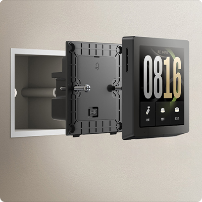 ![]() Установка Устройство устанавливается в стандартную монтажную коробку без переделки проводки. В ней встроено три реле для независимого управления тремя линиями света прямо с экрана. Это позволяет напрямую заменить обычный выключатель. |