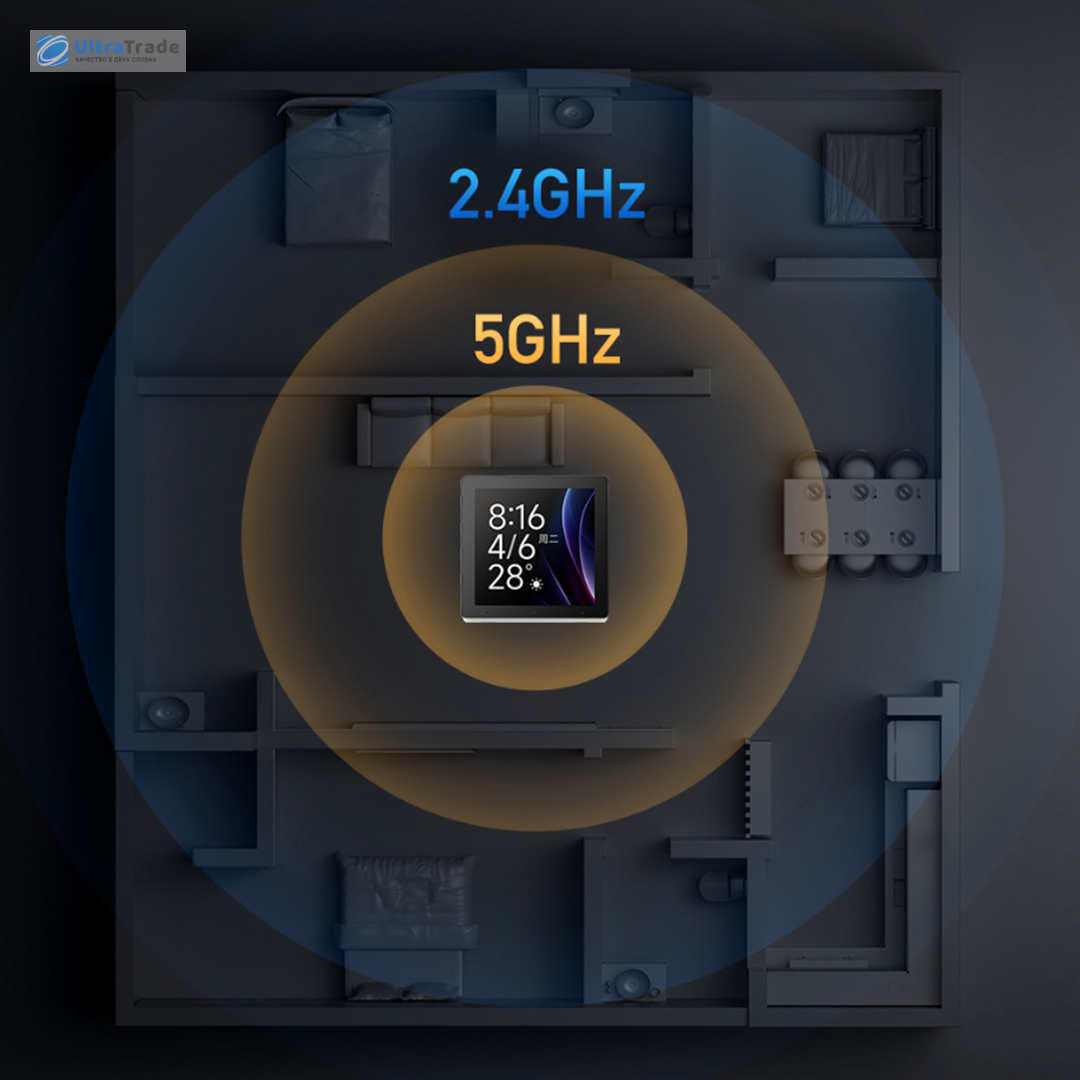 Надёжное и гибкое сетевое подключение В панель встроен шлюз Xiaomi Mesh 2.0 — центральный узел для всех ваших устройств. Он обеспечивает быстрое, мощное и стабильное соединение, позволяя устройствам с Bluetooth подключаться почти мгновенно. Сеть поддерживает множество гаджетов одновременно, гарантируя быстрый отклик и автоматическое удалённое обновление (OTA), даже когда вас нет дома. Устройство поддерживает двухдиапазонный Wi-Fi (2.4 ГГц и 5 ГГц), что делает подключение максимально гибким. Диапазон 2.4 ГГц отлично справляется с прохождением сигнала через стены, а 5 ГГц обеспечивает высокую скорость и минимальные помехи. |