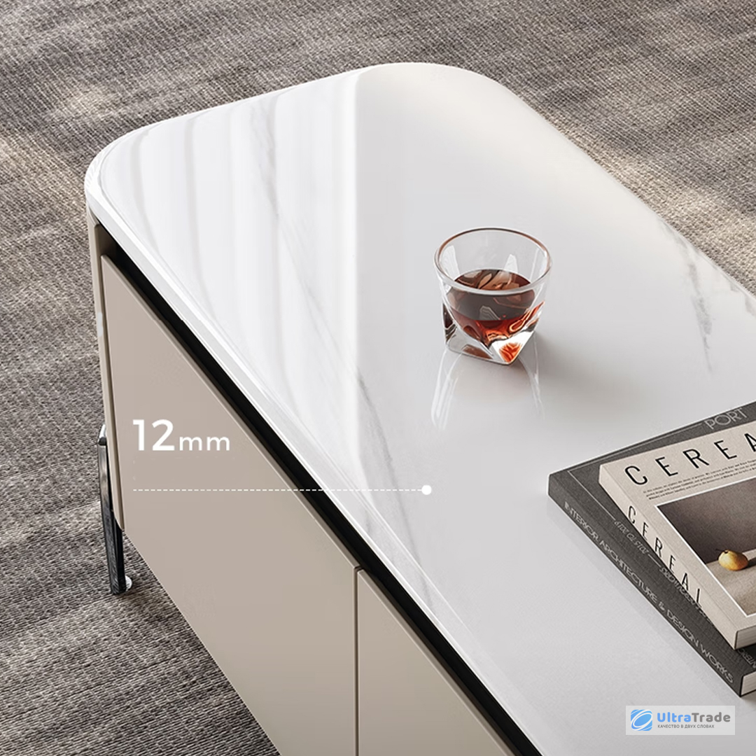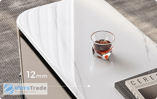 Столешница мебели выполнена из искусственного камня толщиной 12 мм, которая сочетает в себе высокую прочность и изысканный внешний вид.
