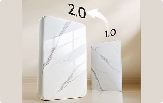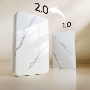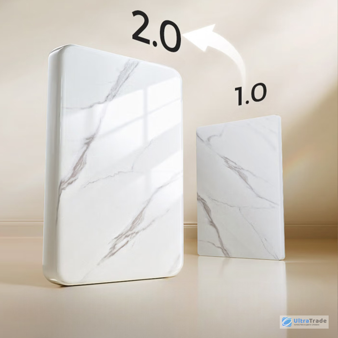 Реалистичная текстура натурального камня создана с помощью высокоточной струйной печати, сохраняющей естественные оттенки. Специальное покрытие по технологии УФ-лака 2.0 обеспечивает глубокий зеркальный блеск и премиальный вид. Края изделия отполированы до гладкости, чтобы каждое прикосновение было приятным.