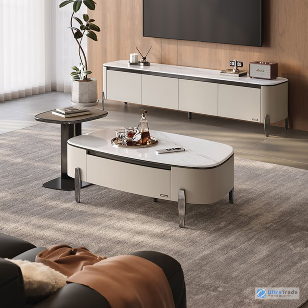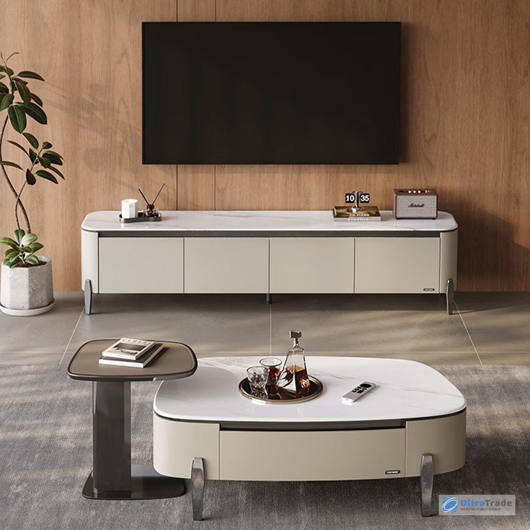 Вы можете дополнить тумбу журнальным столиком из этой же серии, чтобы создать единый и гармоничный интерьерный стиль. Мебель выполнена в одинаковом дизайне и из тех же материалов, что гарантирует безупречное визуальное сочетание. Такое решение позволит наслаждаться уютным пространством.