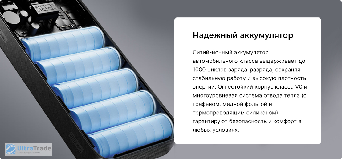 9 уровней безопасности Повербанк оснащён 9 уровнями защиты: от перегрева, от короткого замыкания, от сбоев (Reset), от превышения входного тока, от перенапряжения на выходе, от превышения выходного тока, аппаратную защиту батареи от перегрузки по току и короткого замыкания, а также защиту от перезаряда и чрезмерного разряда аккумулятора. Устройство мониторит температуру 12 000 раз в минуту, мгновенно реагируя на любые изменения. |