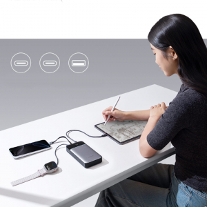 ![]() Универсальность Повербанк выдаёт до 120 Вт для телефонов и планшетов и до 100 Вт для ноутбуков — этого хватит, чтобы продлить работу лёгкого ноутбука в два раза. У повербанка есть 3 порта: встроенный кабель, Type-C и USB-A — можно одновременно подключать до трёх гаджетов. |