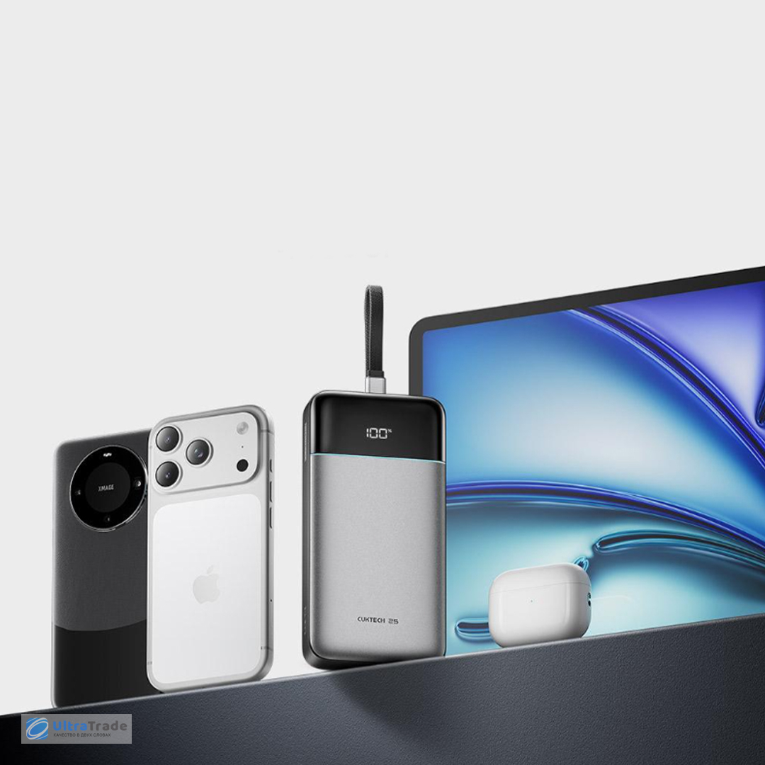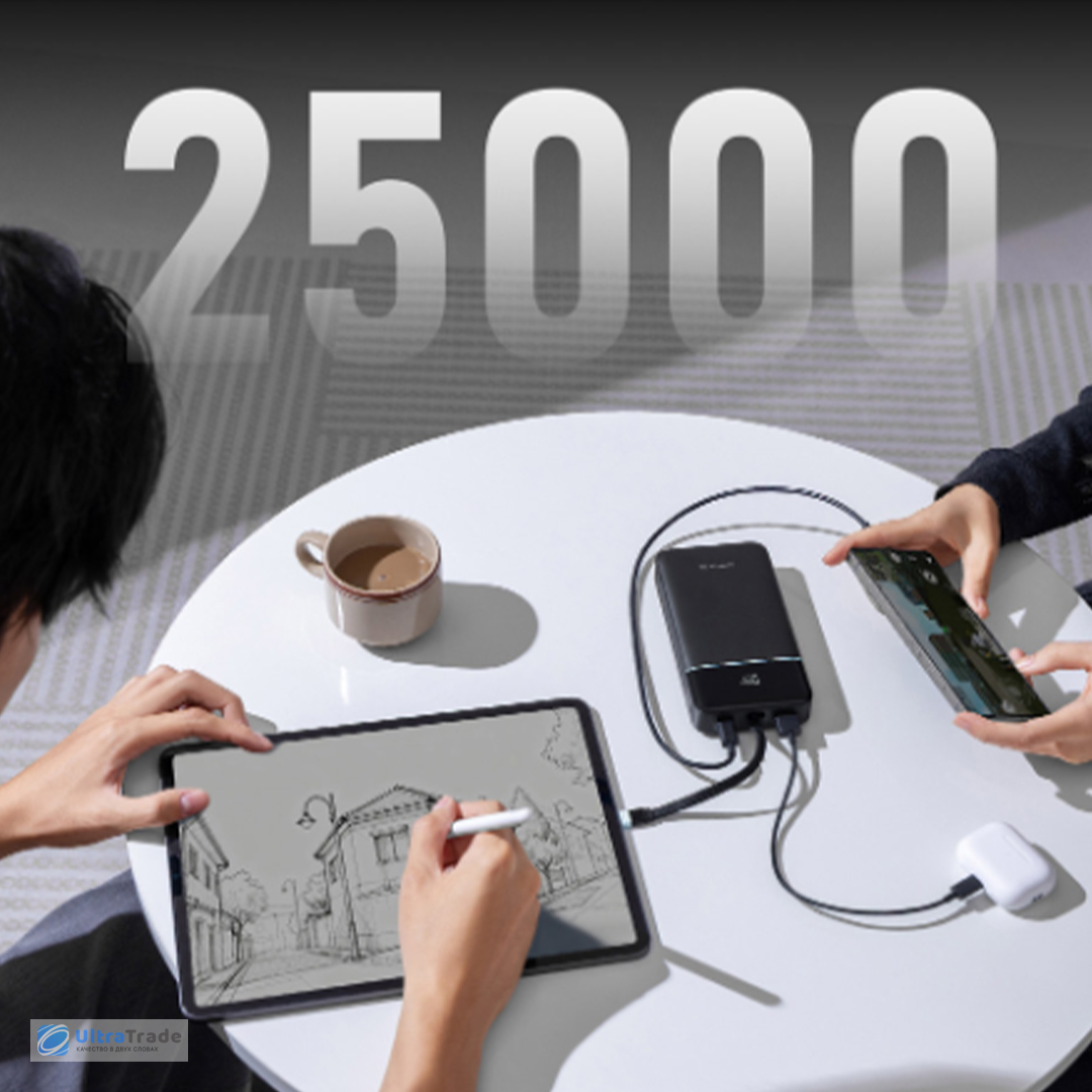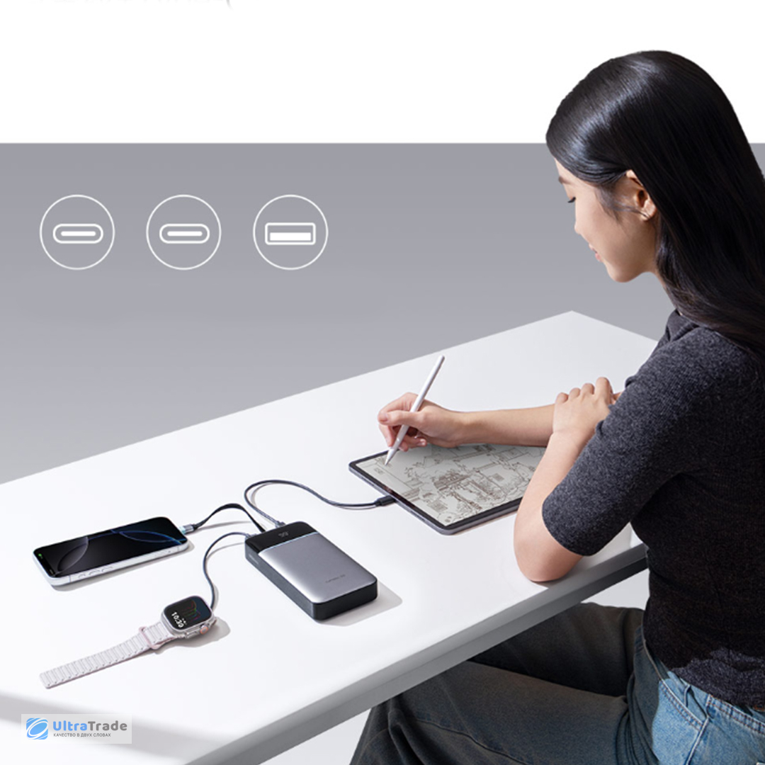 Повербанк для любых задач — от работы до путешествий Повербанк станет незаменимым спутником в командировках и поездках. Например, в деловой поездке он сможет зарядить MacBook Air (M3) примерно 1,2 раза — этого хватит на дополнительный рабочий день без розетки. В дороге или отеле можно без проблем подзарядить Nintendo Switch около 2,5 раз, чтобы скоротать вечер за любимыми играми. |