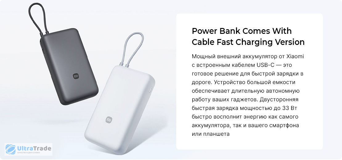 Быстрая зарядка Пауэрбанк обеспечивает быструю зарядку вашего смартфона Xiaomi до 33 Вт с помощью встроенного кабеля. Он также быстро заряжается сам — до 30 Вт. ![]() |