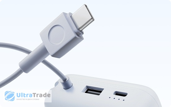 Подключение до трех гаджетов Помимо встроенного кабеля USB-C, он оснащен двумя дополнительными портами: USB-C и USB-A. Такая конфигурация позволяет одновременно подключать до трёх гаджетов, решая задачу комплексного питания всех ваших устройств в поездке. |