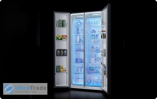 Практичная гладкая панель не оставляет отпечатков, легко моется и устойчива к царапинам. LED-подсветка сверху равномерно освещает всё пространство без резких бликов. Вы можете легко найти нужную еду, не щурясь и не ослепляя глаза.