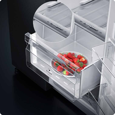 Ящик позволяет выбирать уровень влажности. В режиме высокой влажности он надёжно сохраняет сочность и витамины в свежих фруктах и овощах. В режиме низкой влажности он создаёт идеальные условия для сухих продуктов.