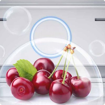 Функция очистки и антибактериальной защиты работает в холодильной и в морозильной камере. Модули с ионами серебра поглощают и нейтрализуют посторонние запахи. Эффективность системы против бактерий составляет 99.99%.