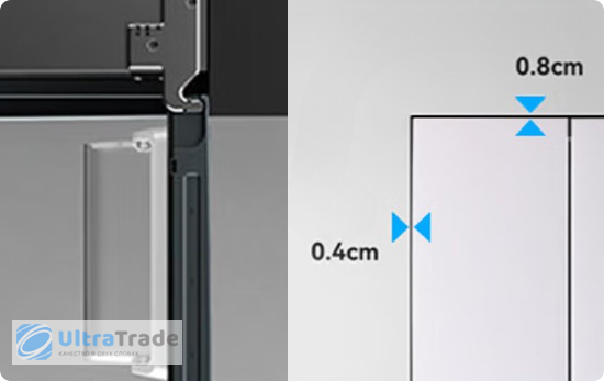 Компактность Благодаря ультратонкому корпусу толщиной всего 60 см и шириной 76 см, холодильник идеально встраивается в стандартные кухонные шкафы, занимая всего 0,456 м² пола. Его фасад полностью выравнивается с мебелью, не выступая вперёд — это делает кухню визуально цельной. ![]() |