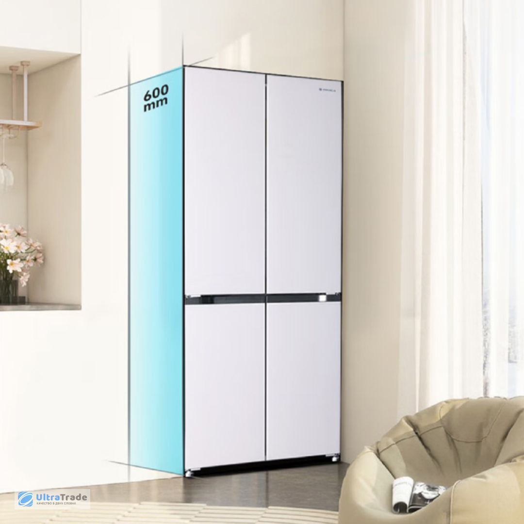 Компактность Благодаря ультратонкому корпусу толщиной всего 60 см и шириной 76 см, холодильник идеально встраивается в стандартные кухонные шкафы, занимая всего 0,456 м² пола. Его фасад полностью выравнивается с мебелью, не выступая вперёд — это делает кухню визуально цельной. ![]() |