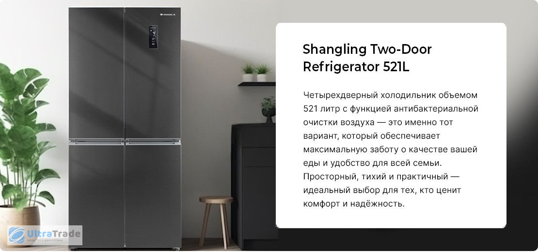 Холодильник оснащён технологией ионной антибактериальной защиты, которая эффективно подавляет до 99% бактерий и вирусов.