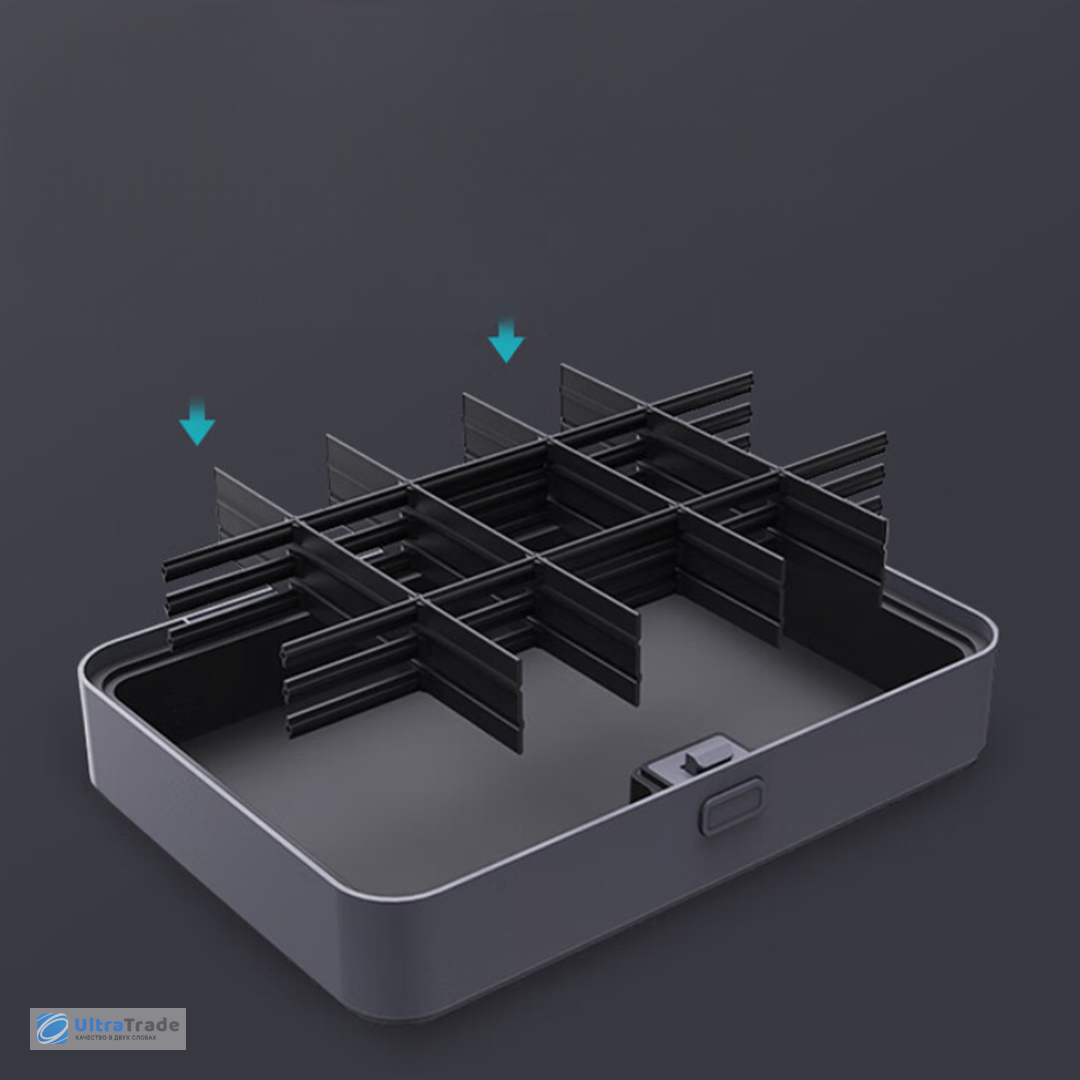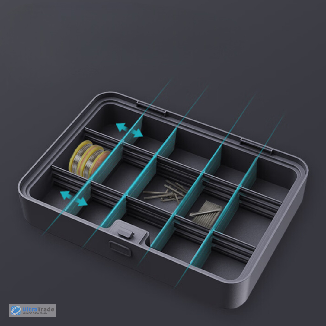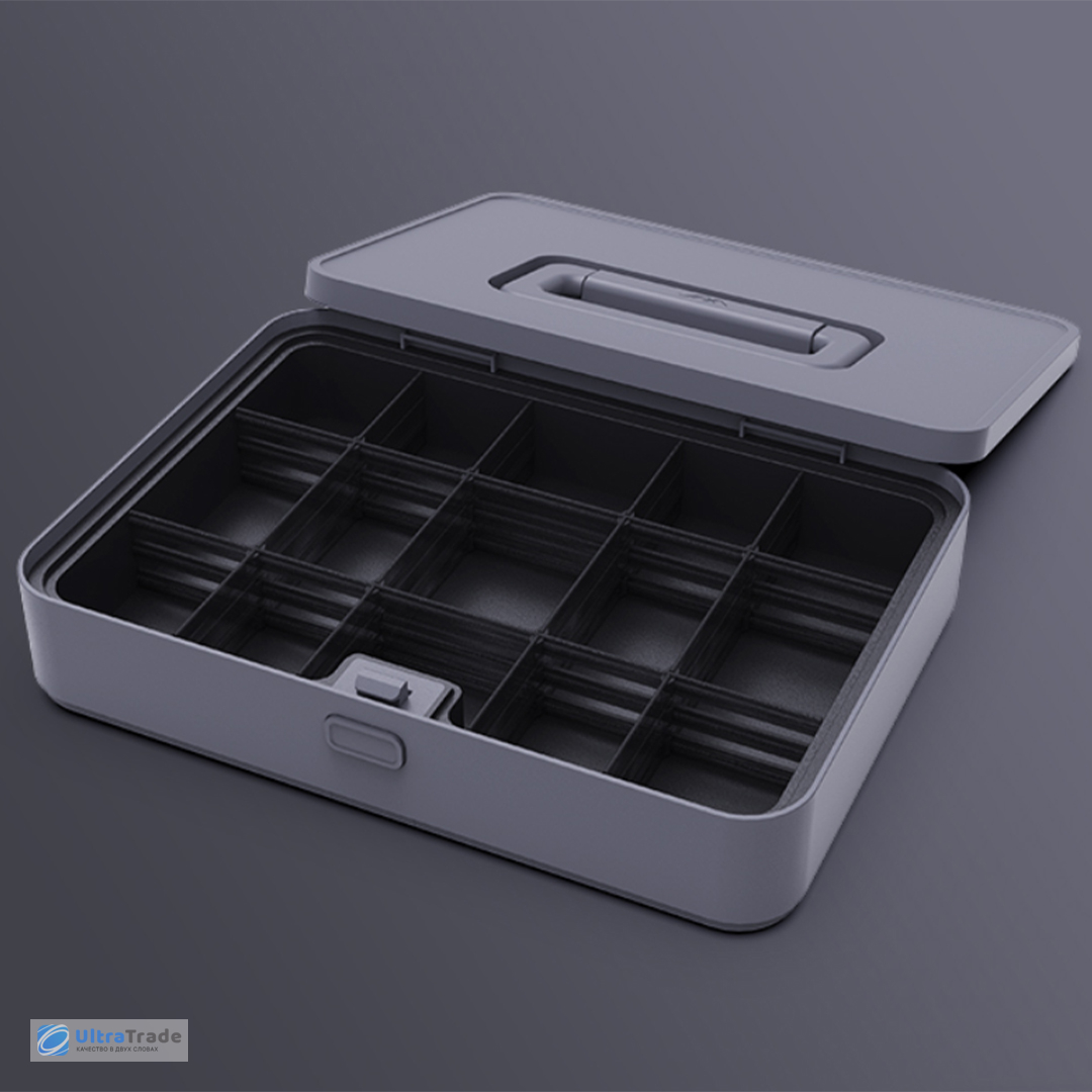 Ящик изготовлен из высококачественных материалов (PC, ABS и алюминиевого сплава), которые гарантируют долговечность и устойчивость к повреждениям. Выдерживает нагрузку до 15 кг — идеальное решение для хранения инструментов, запчастей или бытовых вещей.