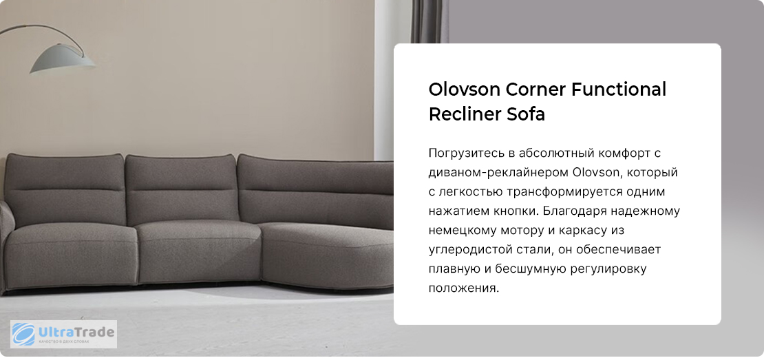 Угловой диван-реклайнер на 3 места Xiaomi Olovson Corner Functional Recliner Sofa 3395 mm Light Gray