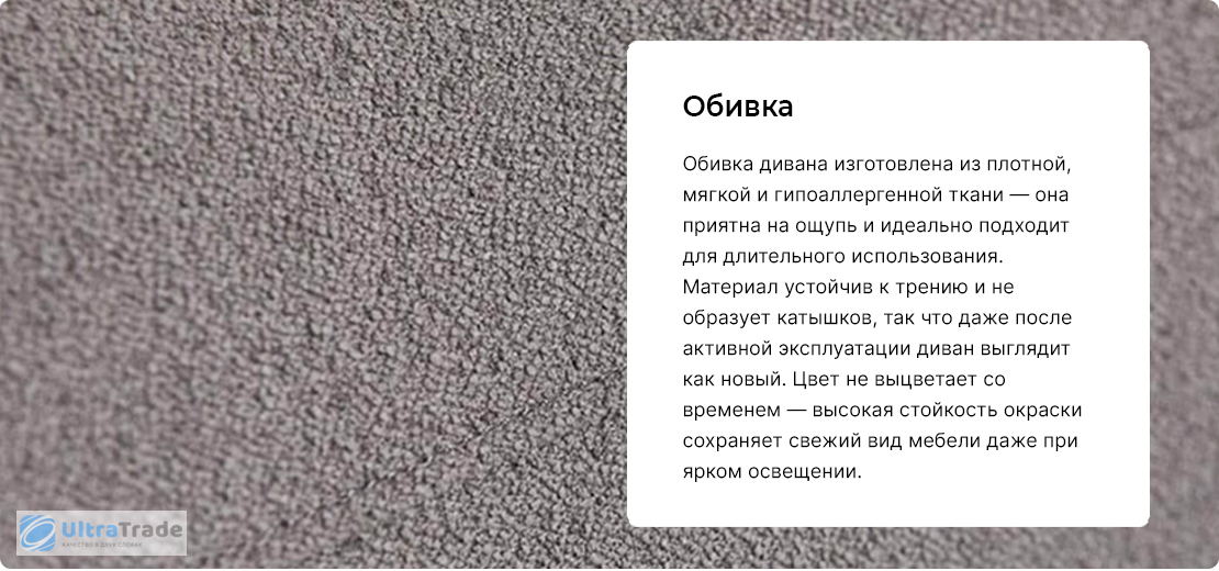 Каркас Внутренний каркас дивана изготовлен из высокопрочной углеродистой стали с износостойким покрытием. Конструкция успешно прошла 260 000 циклов испытаний на долговечность. Каркас выдерживает нагрузку до 160 кг, сохраняя идеальную форму даже при ежедневном использовании. |