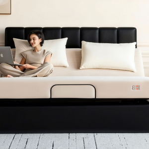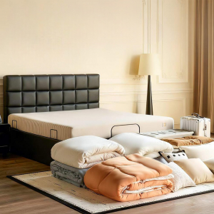 Встроенный электропривод обеспечивает плавный подъем кровати для доступа к внутреннему хранилищу. Вам больше не нужно наклоняться или прилагать усилия — просто нажмите кнопку на пульте.