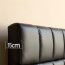 Компактное изголовье глубиной 15 см позволяет плотно установить кровать у стены. Модель имеет ровные края с трех сторон, что визуально освобождает место и оставляет больше свободного пространства для проходов в спальне.