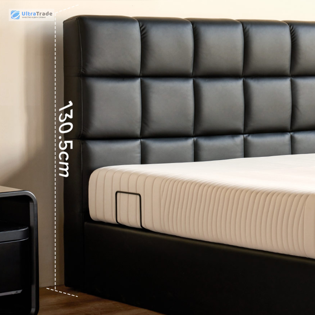 Кровать оснащена цельным мягким изголовьем, комфортным для сидячего отдыха. Его наполнитель из плотной пены и упругого синтетического волокна обеспечивает баланс мягкости и поддержки спины, сохраняя форму со временем.