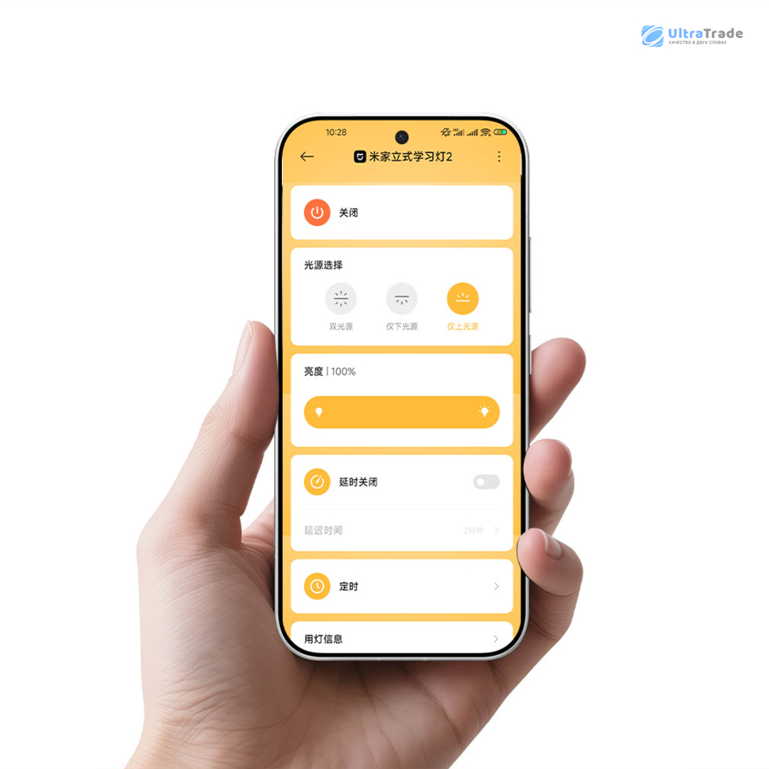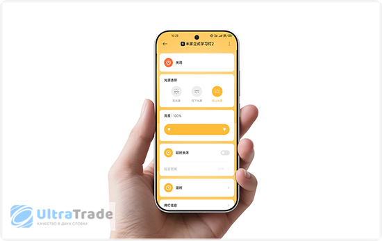 Управление Лампа поддерживает три готовых режима: для учёбы, детского досуга и комфортного использования гаджетов. Через MiHome можно настроить соотношение яркости верхнего и нижнего источников света, активировать фокус-режим для концентрации или задать расписание ночного режима — в указанный период верхний источник работает на минимальной яркости (1 % от максимума). Дополнительно доступен беспроводной Bluetooth-пульт: двойным нажатием активируется пользовательский режим, предварительно настроенный в приложении. |