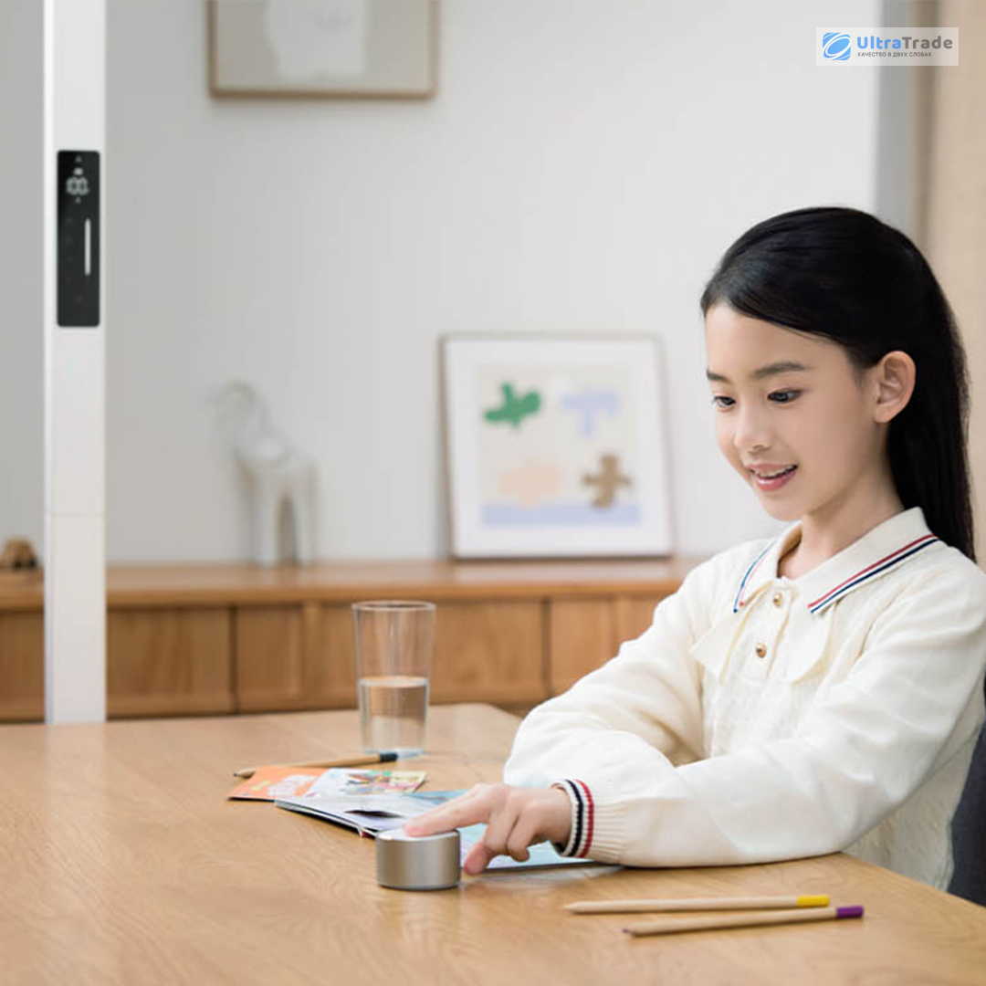 Световой датчик В верхней части лампы расположен высокоточный световой датчик, который отслеживает изменения окружающего освещения и автоматически корректирует яркость — обеспечивая стабильную рабочую освещённость на столе. Собственный ИИ-алгоритм дополнительно учитывает индивидуальные предпочтения ребёнка в использовании света и точнее подбирает режим освещения под его привычки. |