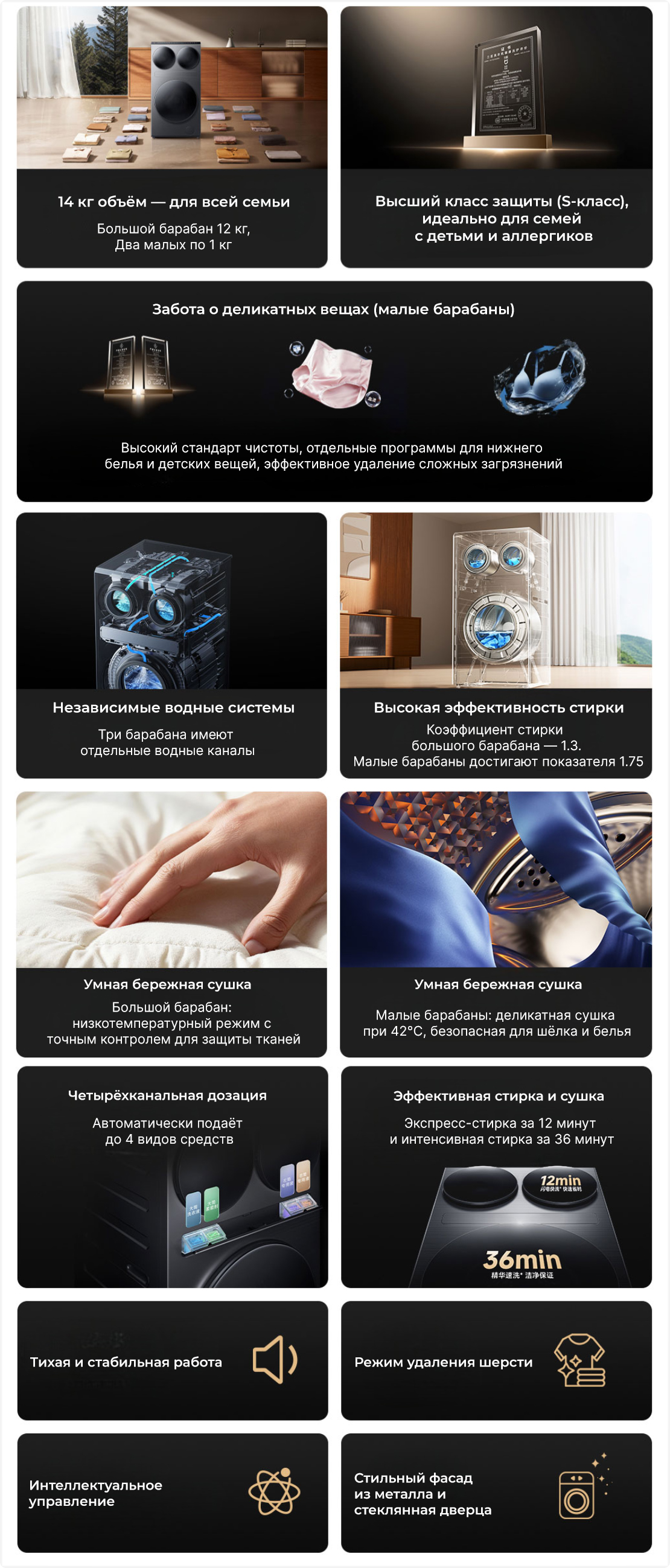 Умная стиральная машина с сушкой Xiaomi Mijia Three-Zone Washing Machine Pro Washing And Drying 14kg (XHQG140MJ202)