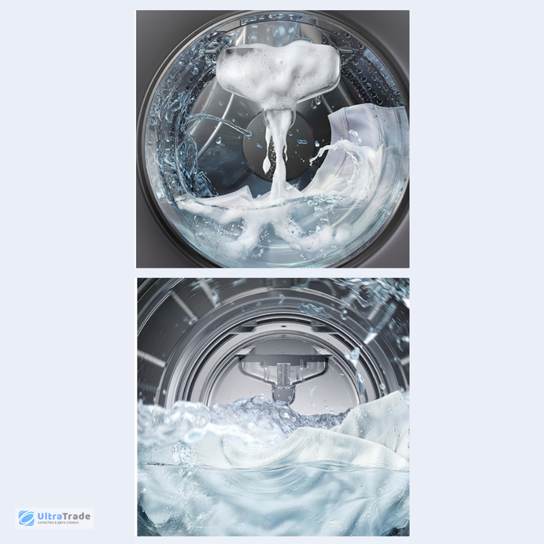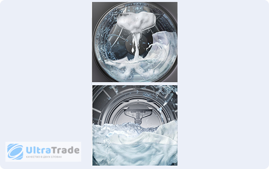 Система предварительного смешивания Модель использует двухэтапную систему подготовки моющих средств. Сначала инновационная технология с вращающейся крыльчаткой быстро растворяет моющее средство, превращая его в густую активную пену. Это позволяет моющему средству лучше проникать в волокна и эффективнее удалять загрязнения. На втором этапе, во время полоскания, струи воды из специального отверстия направляются прямо на область смешивания и тщательно смывают остатки пены. Коэффициент чистоты 1.25 гарантирует превосходный результат каждой стирки. |