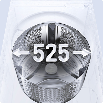 Большой барабан Барабан диаметром 525 мм даёт больше места для белья — оно свободно расправляется, меньше мнётся и почти не образует складок. Это позволяет воде и моющему средству лучше проникать в ткань, обеспечивая более эффективную очистку. ![]() |