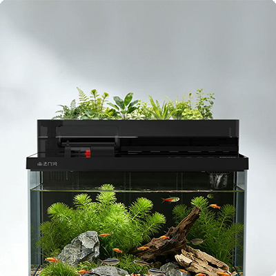 Аквариум оснащён двумя умными системами освещения. Прожектор специально создан для воссоздания загадочной атмосферы подводного пейзажа. Подсветка аквариума предлагает 6 световых режимов. Фитолампа сочетает 16 полноспектральных светодиодов и 12 специализированных ламп и создаёт правильный спектр для роста водных растений.