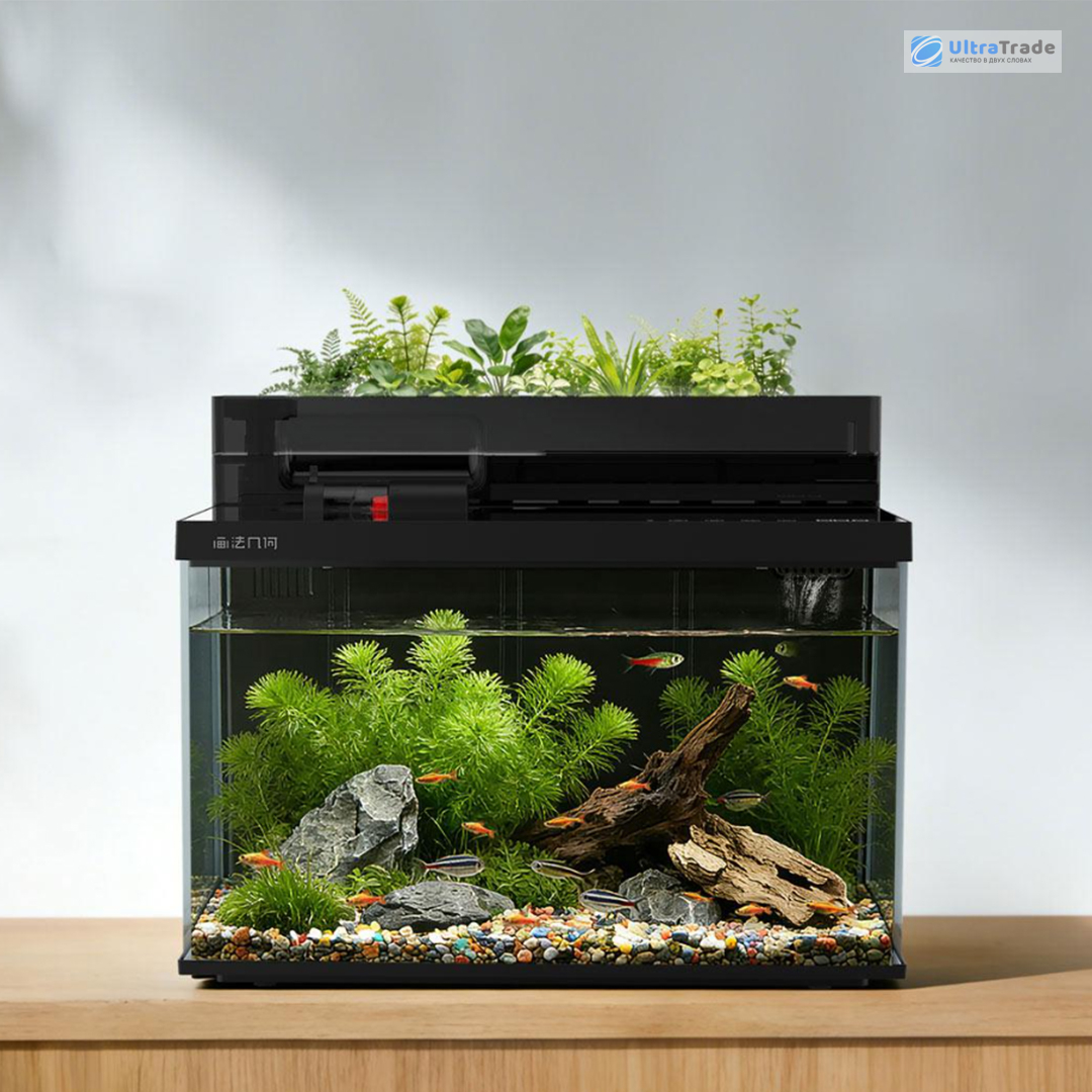 Специальный модуль позволяет создать уникальную двухуровневую экосистему. Наверху можно вырастить миниатюрные кувшинки или декоративную траву, создав зелёный островок над водой. Внизу, в водной части, будут жить яркие тропические рыбки.