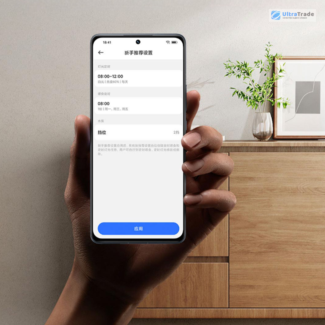 Подключитесь к MiHome для удалённого контроля. Для новичков есть рекомендованный режим, который автоматически настраивает кормление и освещение. Опытные владельцы могут тонко настроить расписание кормления, световые сценарии и таймеры под конкретные виды рыб.
